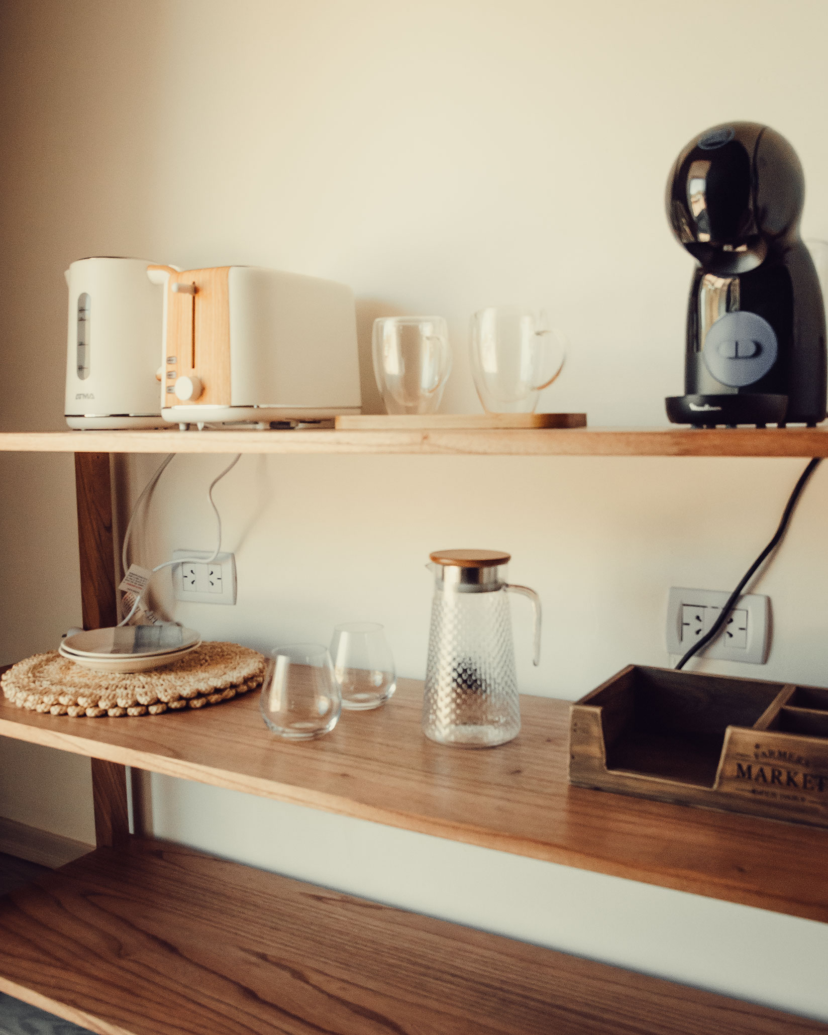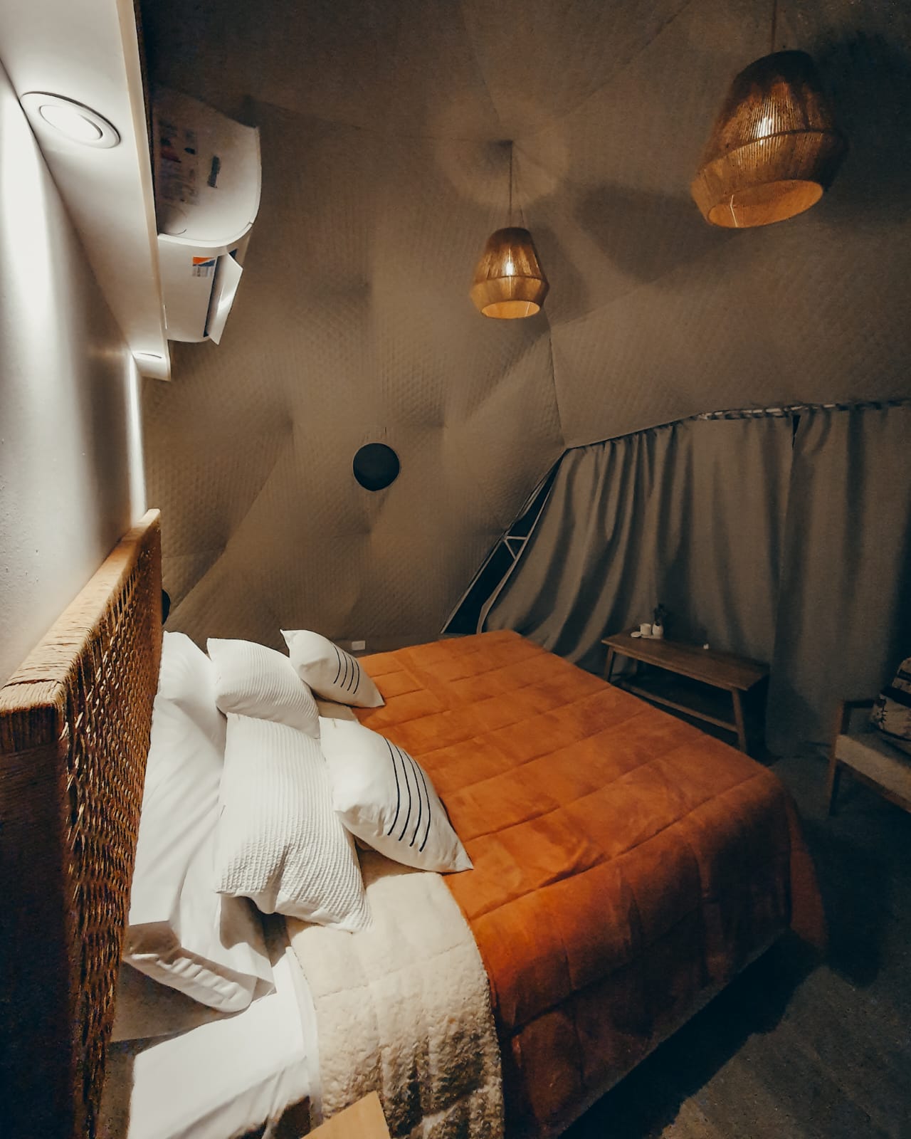 Cada domo cuenta con baño privado completo, juego de living, Aire acondicionado frio/calor inverter lo que garantiza confort y silencio, cafetera dolce gusto, tostadora, pava eléctrica y todo lo necesario para disfrutar del desayuno que preparamos de forma casera y servimos en cada unidad.